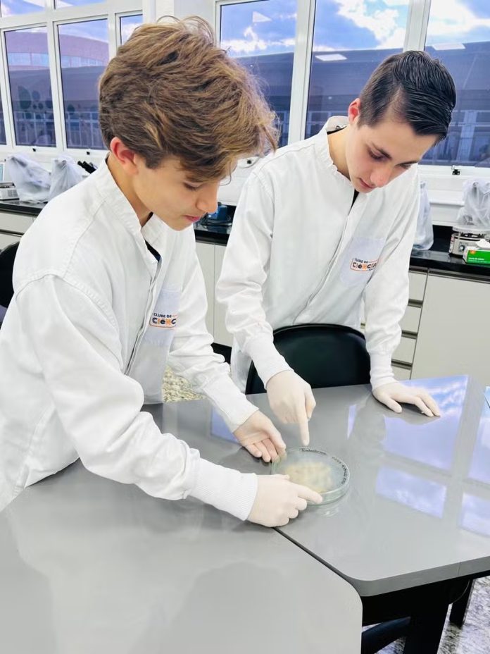 Além das olimpíadas, projetos científicos desenvolvidos pelos alunos também chamam a atenção. Inspirado pelos avós agropecuaristas, João Pedro Decarli, 14, pesquisa uma ração enriquecida com compostos naturais para reduzir a emissão de metano na pecuária, em parceria com o Novo Arranjo de Pesquisa e Inovação (Napi) do Biopark. O colega Leonardo Schroder Volkweis, também de 14 anos, participa da pesquisa, que une biotecnologia e sustentabilidade com o objetivo de reduzir as emissões de gases de efeito estufa e melhorar a saúde dos animais.