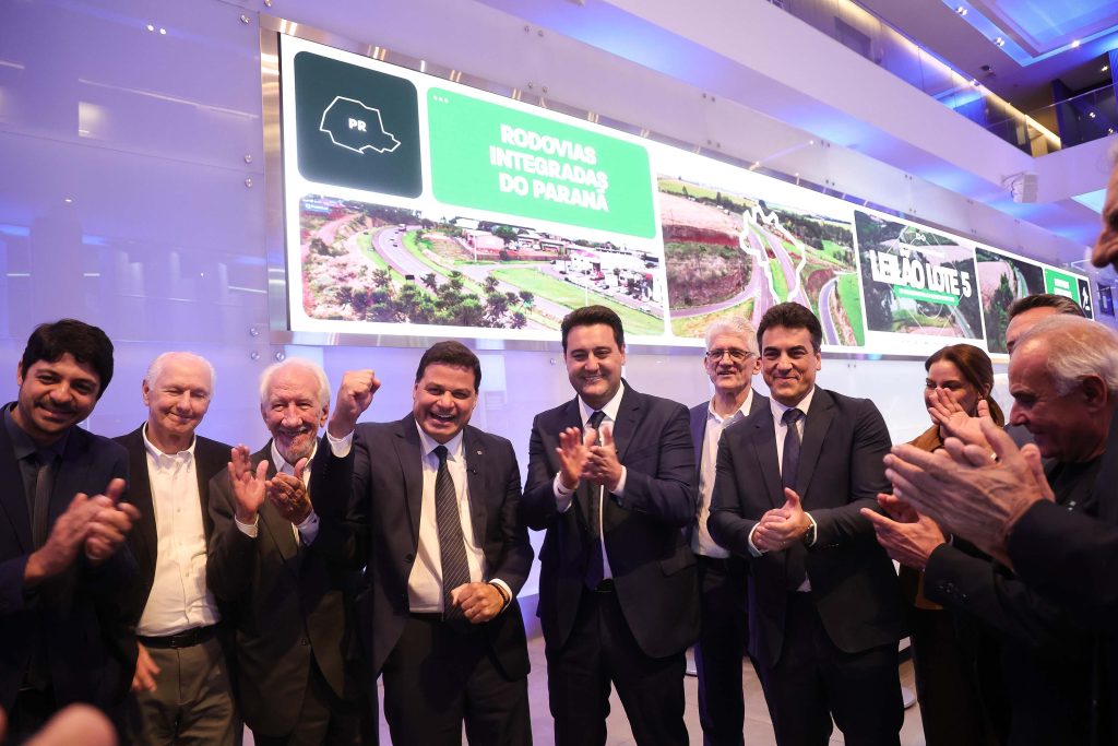 Martelo batido e o fim dos leilões das concessões rodoviárias no Paraná. Em São Paulo, o governador Ratinho Junior participou dos leilões dos lotes paranaenses que somam 3,3 mil quilômetros de estradas estaduais e federais, com investimentos previstos de mais de R$ 60 bilhões em obras e operação.