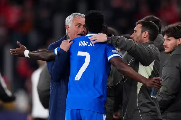 Durante a confusão, Vinícius recebeu apoio de companheiros como Kylian Mbappé e foi amparado pelo técnico adversário José Mourinho, embora o treinador do Benfica tenha dito que o clube não é racista e questionado a comemoração do brasileiro.