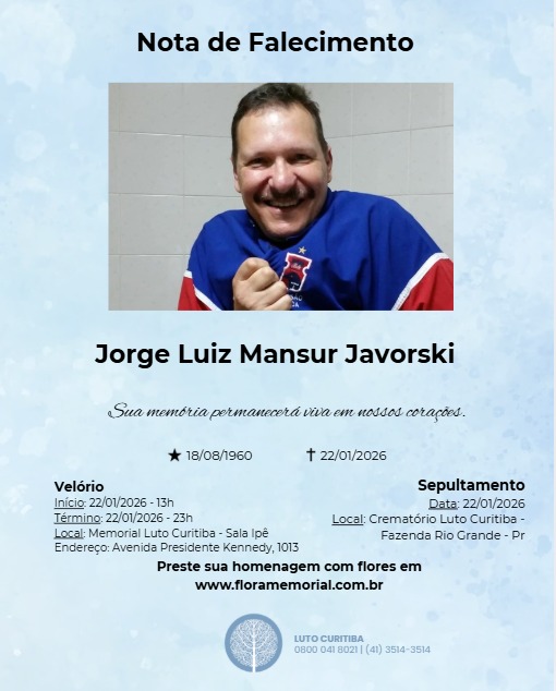 A equipe do Paraná Portal faz uma pausa para homenagear um jornalista especial, amigo, o qual tive o prazer e a honra de trabalhar ao seu lado na “antiga ou velha redação da Gazeta do Povo” que veio a falecer nesta quinta-feira (22). Vá com Deus, Jorge Javorski. Nossos sentimentos à esposa, Regina e ao filho Bruno. Jorjão, que venceu tantos obstáculos na vida foi, infelizmente, derrotado por um câncer. O velório será realizado a partir das 13 horas no memorial Luto Curitiba – sala Ipê – Avenida Kennedy, 1013, Curitiba.