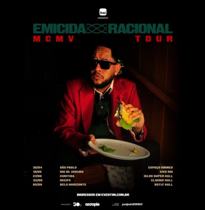 Curitiba está na rota da nova fase de Emicida. O artista paulista se apresenta na capital paranaense em 27 de junho, no Igloo Super Hall, com a turnê Emicida Racional MCMV Tour, projeto que transporta para o palco o conceito do álbum Emicida Racional VL 2 Mesmas Cores & Mesmos Valores, inspirado na obra dos Racionais MCs.