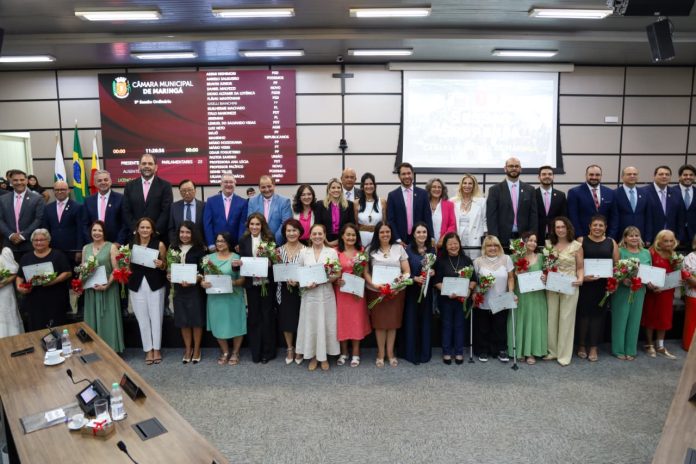 Cada vereador indicou uma maringaense para receber a homenagem. A deputada Maria Victoria recebeu o título das mãos do vereador Willian Gentil (PP).