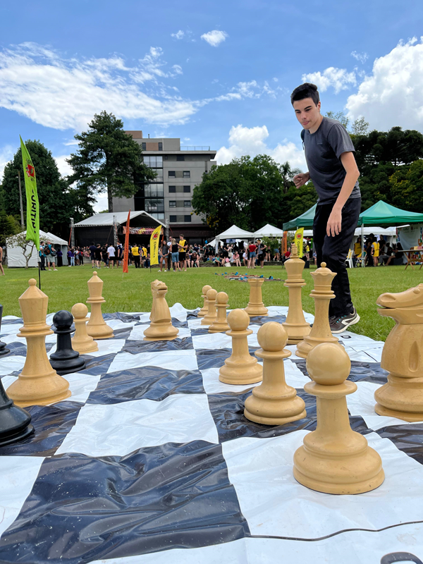 Durante o evento, os estudantes tiveram acesso a jogos gigantes, espaço de convivência, tênis de mesa, badminton e outras atividades que proporcionaram momentos de descontração e socialização, essenciais para o bem-estar dos jovens em períodos de grande pressão.