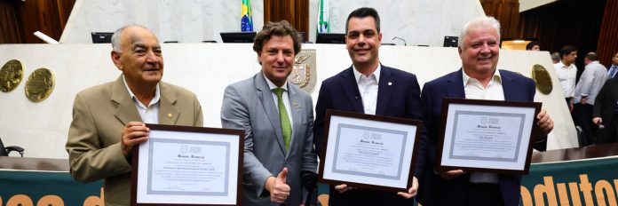 “Agradeço, em nome da diretoria e dos colaboradores da FAEP, a cada deputado estadual, em especial ao presidente, Alexandre Curi, e ao deputado Anibelli Neto, que propôs essa homenagem. Chegar até aqui exigiu trabalho e esforço de cada um dos milhares de produtores rurais do Paraná e dos nossos 162 sindicatos rurais. A caminhada não foi fácil, mas valeu a pena”, destaca o presidente interino do Sistema FAEP, Ágide Eduardo Meneguette.