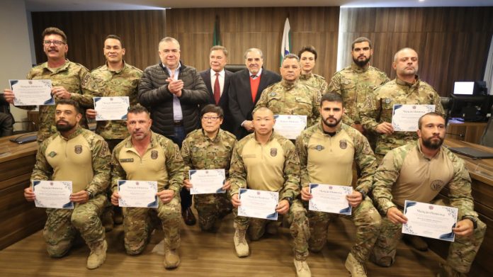 Nesta quarta-feira (22), a Assembleia Legislativa do Paraná reconheceu a excelência do trabalho do Grupo Tigre, unidade de elite da Polícia Civil do Paraná, em uma cerimônia no Auditório Legislativo. A iniciativa foi proposta pelo deputado Ney Leprevost e contou com a presença de políticos, autoridades e empresários.