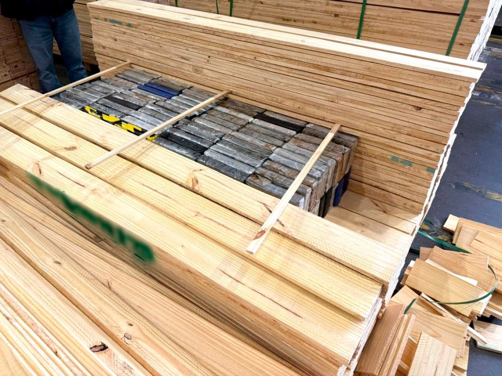 As centenas de tabletes da droga estavam ocultos em uma carga de compensados de madeira. Com auxílio de um cão farejador e escâneres, 994 tabletes foram localizados.
